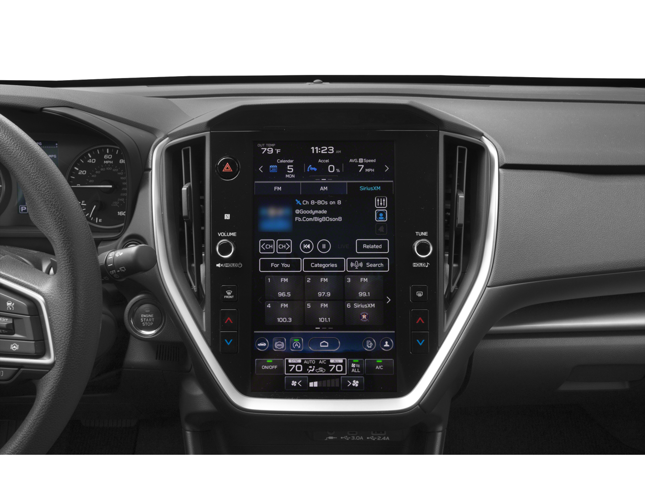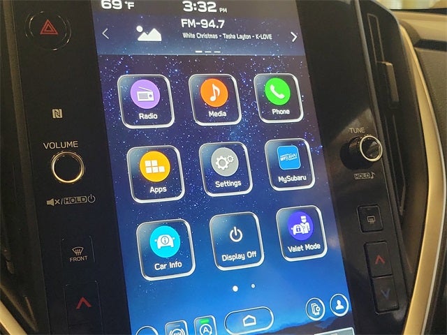 - Radio: Subaru 11.6" Multimedia Plus System -inc: valet mode, AM/FM stereo, HD Radio, multi-touch gesture high resolution display screen, voice activated controls, Bluetooth® audio streaming and hands-free phone connectivity, Bluetooth® hands-free SMS text messaging connectivity, iPod control capability, SiriusXM w/360L (4 months free trial/subscription required after), SiriusXM Travel Link (4 months free trial/subscription required after), smartphone integration: Android Auto w/full screen view and wireless connection, Apple CarPlay w/full screen view and wireless connection, USB and Over The Air (OTA) audio system update, audio system and Buletooth steering wheel control switches, 6 speakers, illuminated 3.5mm auxiliary input jack, illuminated USB A and C input charge ports, roof mounted black antenna and satellite connected services