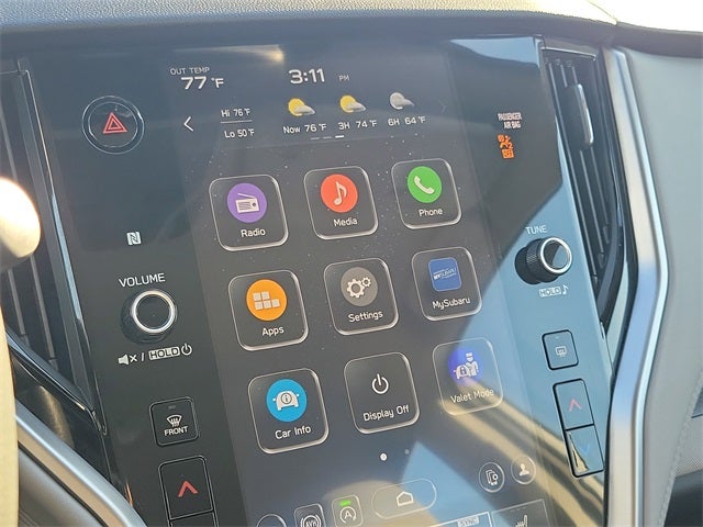 - Radio: Subaru 11.6" Multimedia Plus System -inc: AM/FM stereo, HD Radio, valet mode, multi-touch gesture high resolution display screen, voice activated controls, Bluetooth® audio streaming and hands-free phone connectivity w/SMS text messaging (refer to subaru.com for cell phone compatibility), Near Field Communication (NFC), iPod control capability, SiriusXM w/360L (4 months free trial/subscription required after), SiriusXM Travel Link (3 years free trial/subscription required after), smartphone integration w/full screen view and wireless connection for Android Auto and Apple CarPlay, USB and Over The Air (OTA) audio system update, audio/Bluetooth® steering wheel control switches, 6 speakers, 3.5mm illuminated front auxiliary input jack, illuminated front and rear USB-A and USB-C input/charge ports and roof mounted satellite and connected services